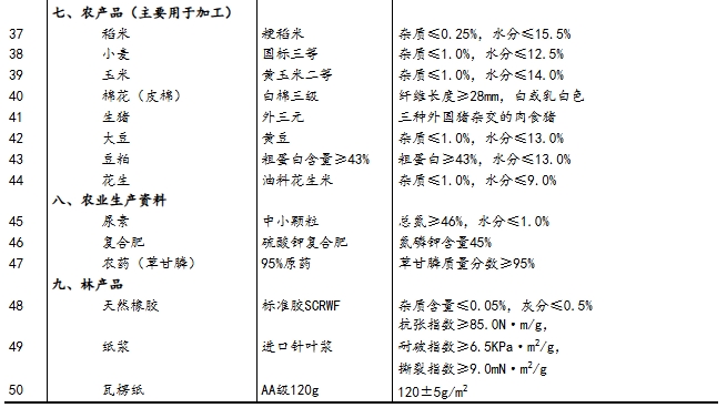 附表 流通领域重要生产资料市场价格监测产品规格说明表