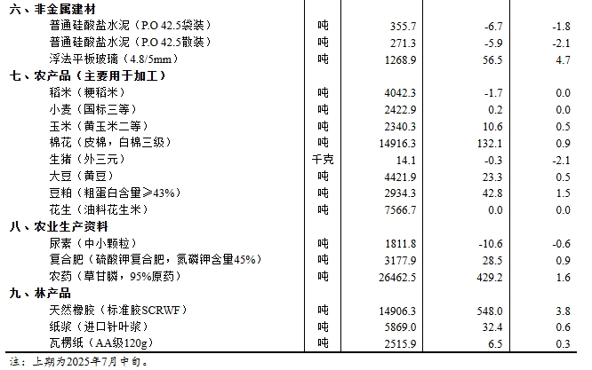 国家统计局发布7月下旬流通领域重要生产资料市场价格变动情况