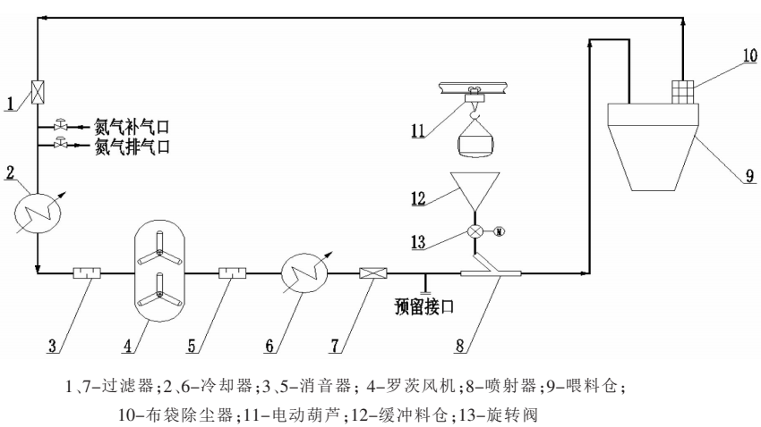 氮气循环气力输送系统工艺流程图