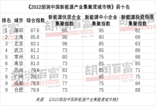 胡润中国新能源产业集聚度城市榜出炉华东区域上榜城市占比过半