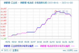 11月30日,电池级碳酸锂国内混合均价价格为587000元/吨,与11月1日均价583000元/吨相比上涨了0.69%。 据生意社数据监测:11月工业级和电池级碳酸锂...2022-12-02 10:05:56