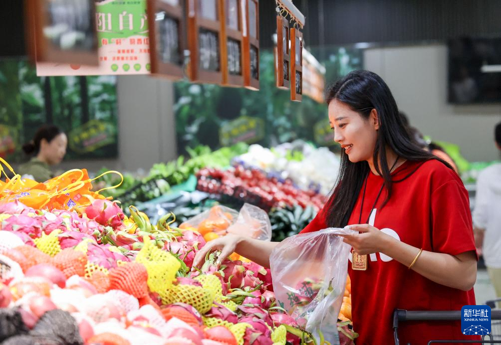 5月10日,消费者在山东省滨州市阳信县一家超市选购水果。新华社发(初宝瑞摄)