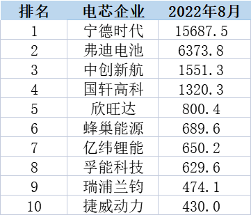今年8月,全球动力电池装机量TOP10企业分别为宁德时代、弗迪电池(比亚迪)、LG新能源、松下电池、SKOn、三星SDI、CALB、国轩高科、欣旺达和蜂巢能源。