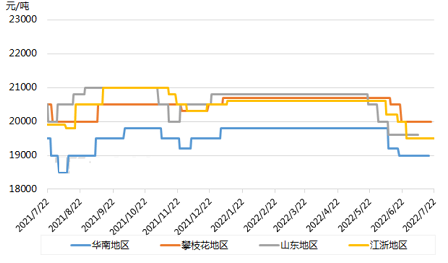 2022年7月钛白市场弱势运行,市场气氛疲软。本月末金红石型钛白粉报价19000-20300元/吨,锐钛型多集中在16500-18500元/吨,市场价格方面金红石型多集中在18500-19500元/吨,锐钛型市场价格多集中在16500-17500元/吨。