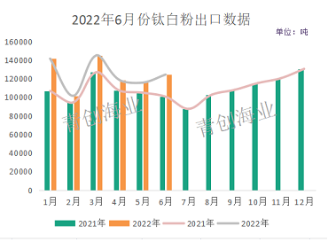 本月钛白粉出口量较上月环比增长7.53%,较去年同期同比增长23.68%;2022年1-6月累计出口总量742264.16吨,比去年同期增长16.56%