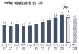 2022年1-11月中国电解液产量上半年在2月由于春节且工作日短,产量下降,4月疫情管制导致的产量下调,下半年以来一直随车市旺盛而产量不断上涨,此次在11月出现首降。 ...2022-12-20 14:25:18